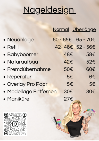Ich bin Nageldesignerin aus Leidenschaft und darf seit 2014 wundervolle Nägel zaubern. Stets bilde ich mich weiter, um euch die neuesten Trends und Techniken anbieten zu können, sowie auch klassische Maniküren.