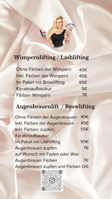 Zusätzlich biete ich seit dem 22. April 2025 auch Brow- und Lashlifting an. Ich arbeite mit Wachs, Pinzette oder Faden und forme sowie färbe eure Augenbrauen genau nach euren Wünschen, natürlich darf eine Pflegekur zum Schluss nicht fehlen!